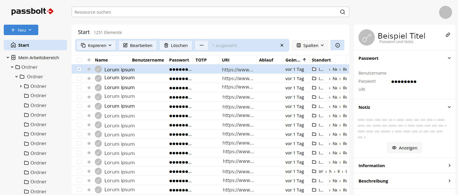 Beispiele vom Dashboard von Passbolt